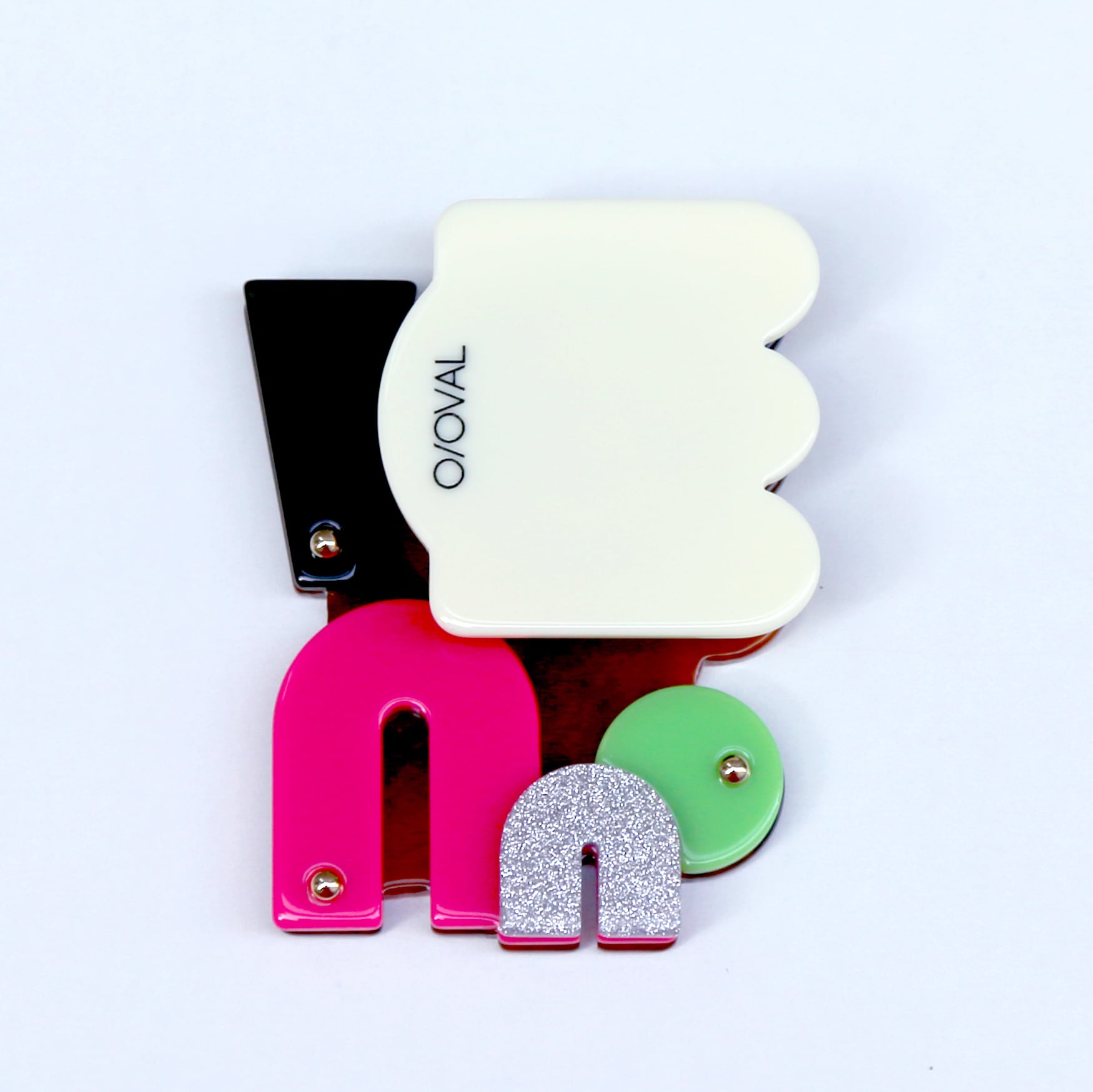 アクリルを重ね合わせ、立体的でユニークなデザインに仕上げています。
