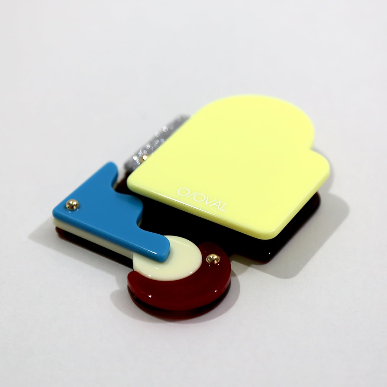 アクリルを重ね合わせ、立体的でユニークなデザインに仕上げています。
