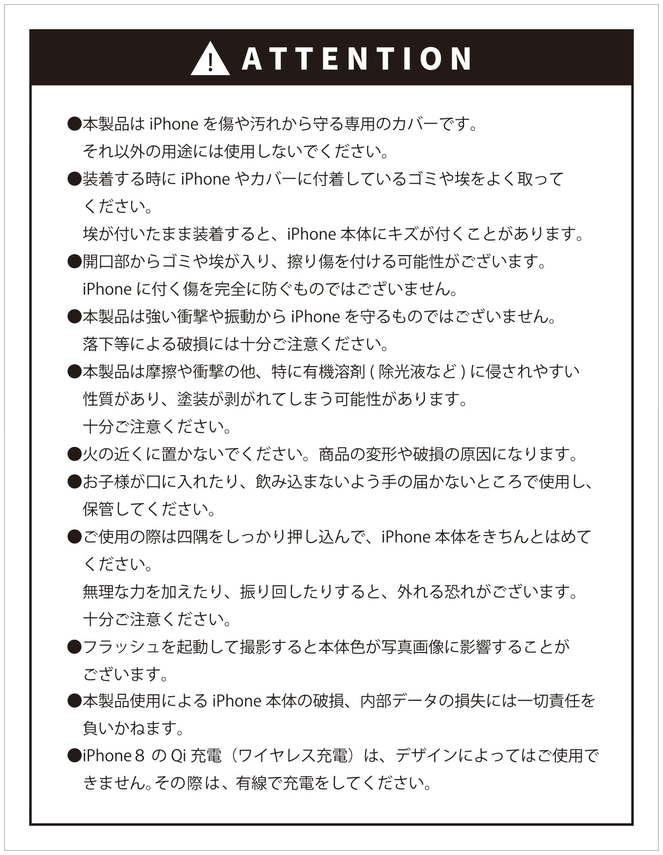 本製品仕様によるiPhone本体への破損、内部データの損失には一切責任を負い兼ねます