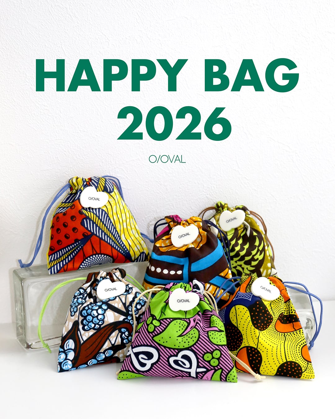 HAPPY BAG用に制作した O/OVALオリジナルのアフリカンプリント巾着 に、