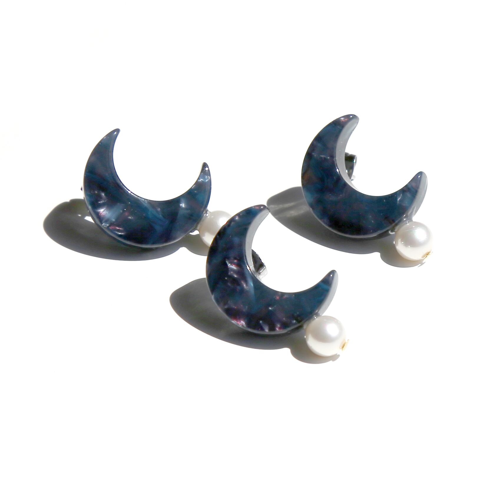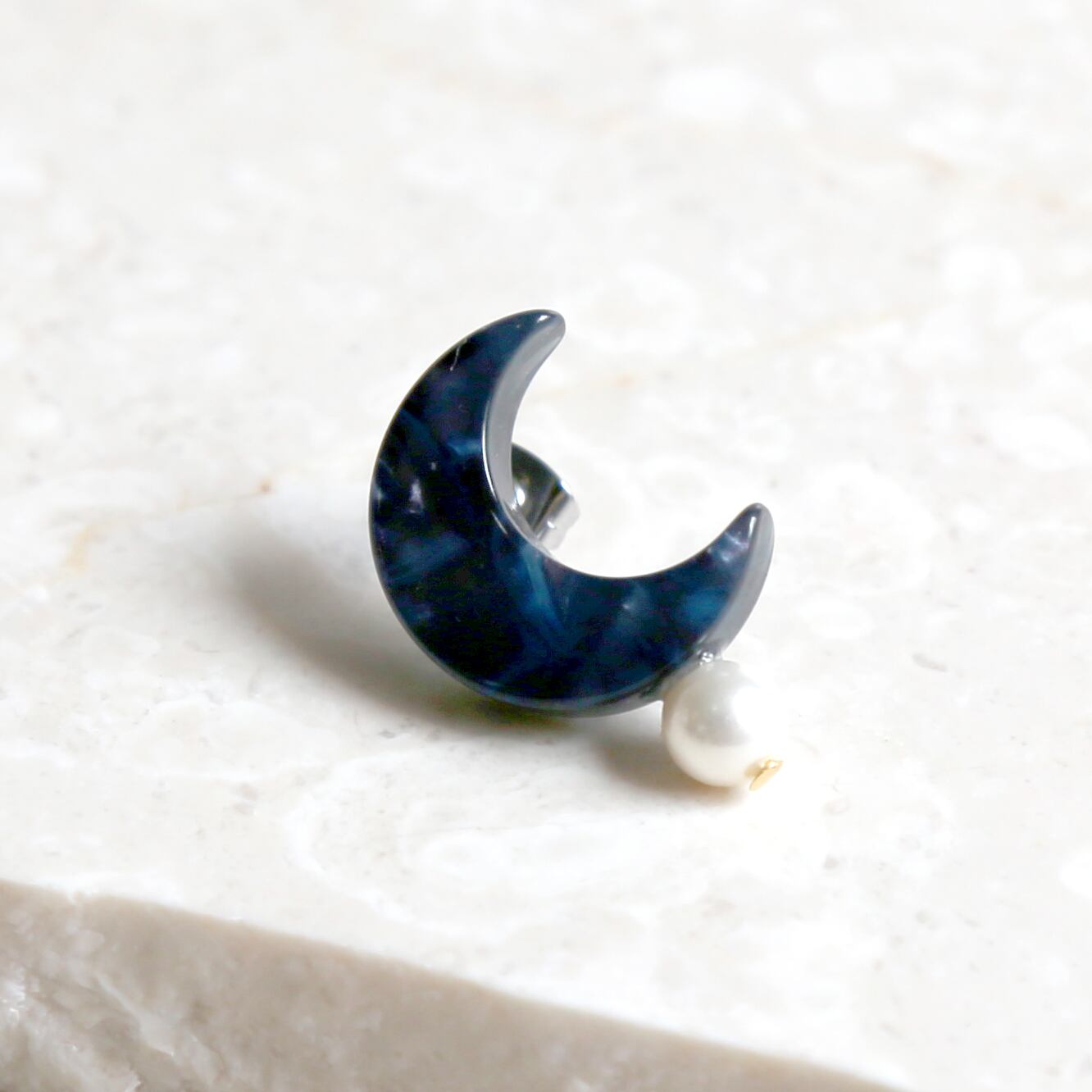 EARRINGS【ER-048】CRESCENT MOON(右欠け) NAVY ※片耳販売