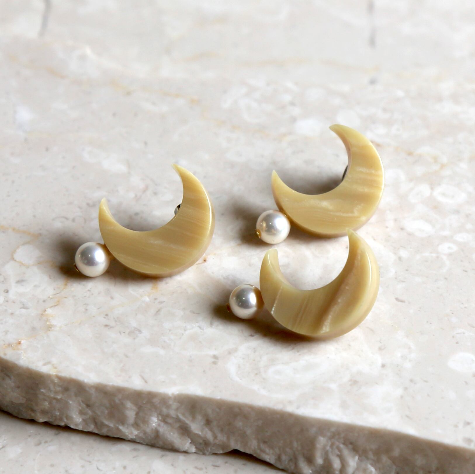 EARRINGS【ER-048】CRESCENT MOON(左欠け) BEIGE ※片耳販売