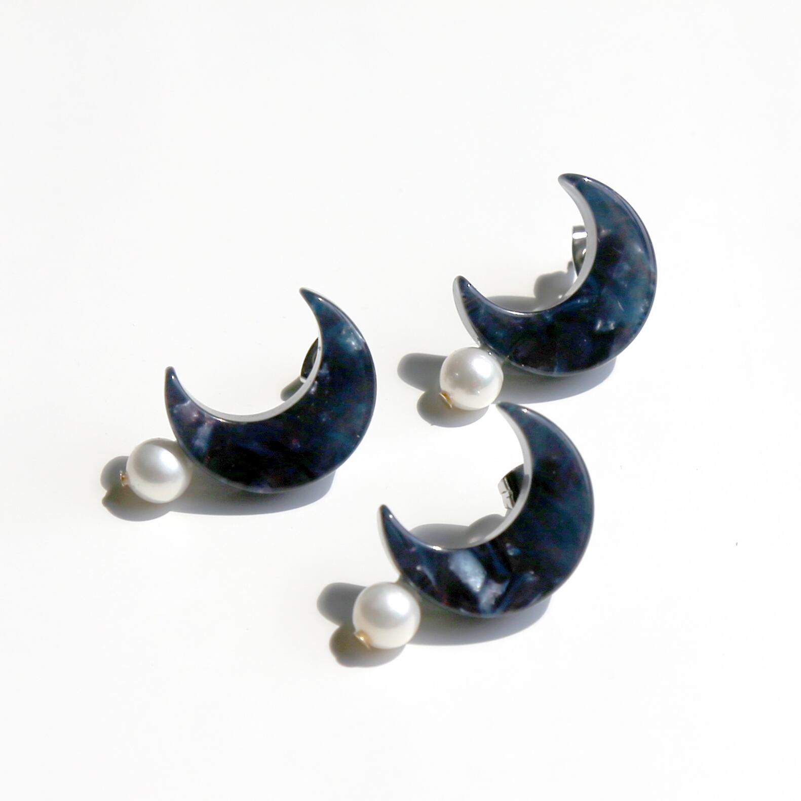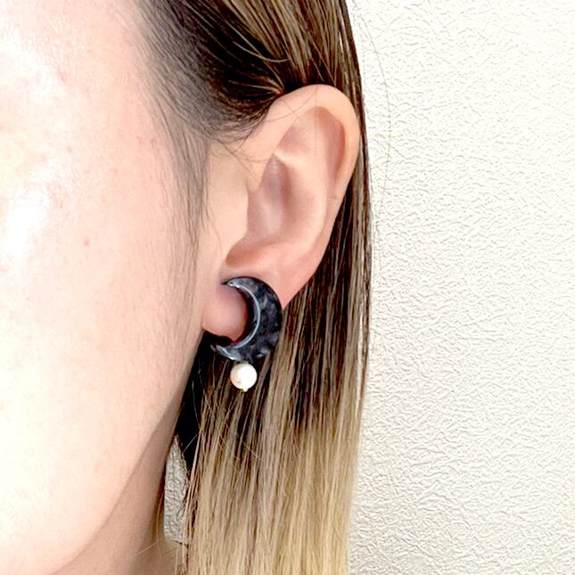 EARRINGS【ER-048】CRESCENT MOON(左欠け) NAVY ※片耳販売