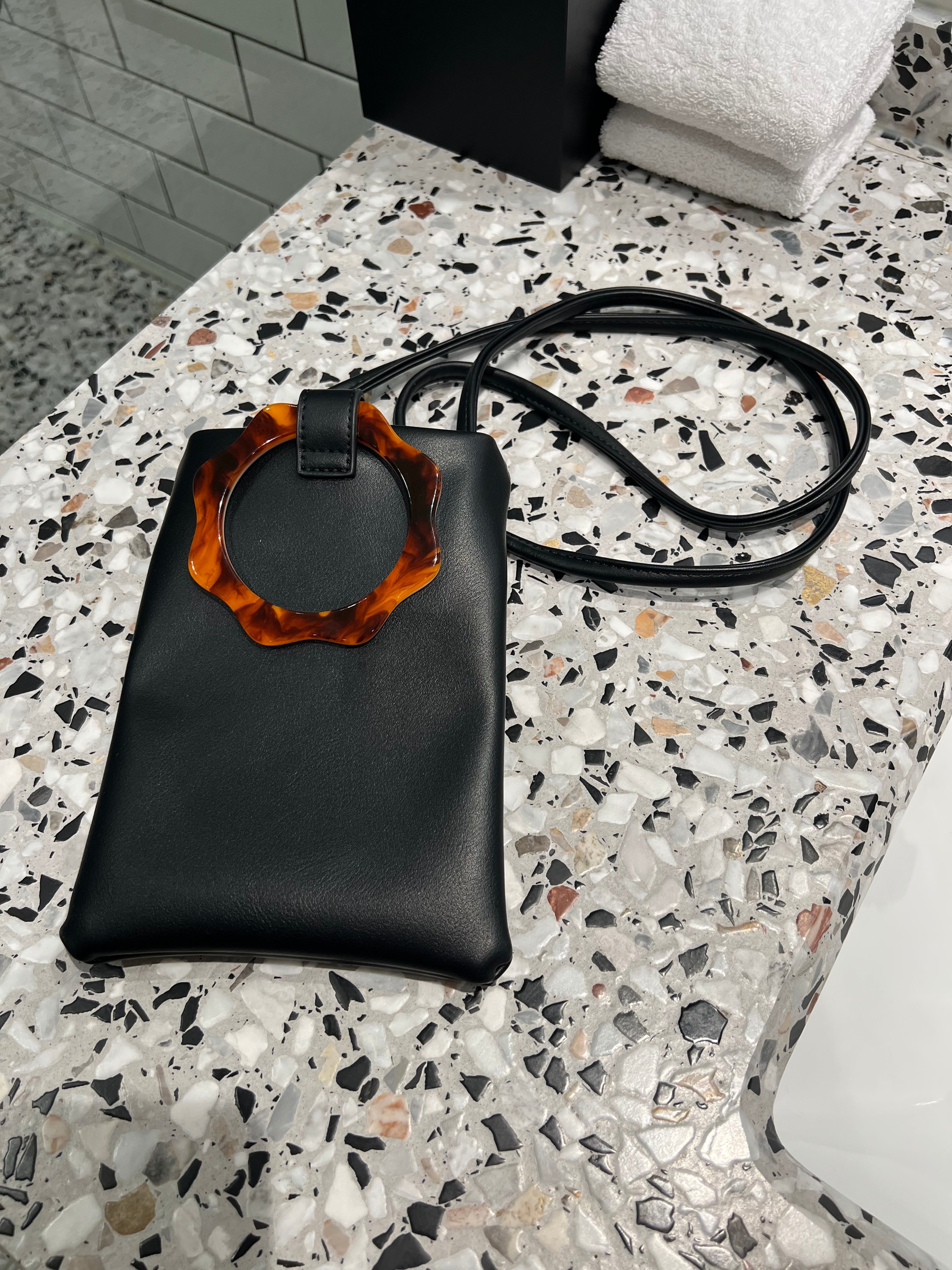 スマートフォンがちょうど収まるサイズのポシェットです。