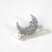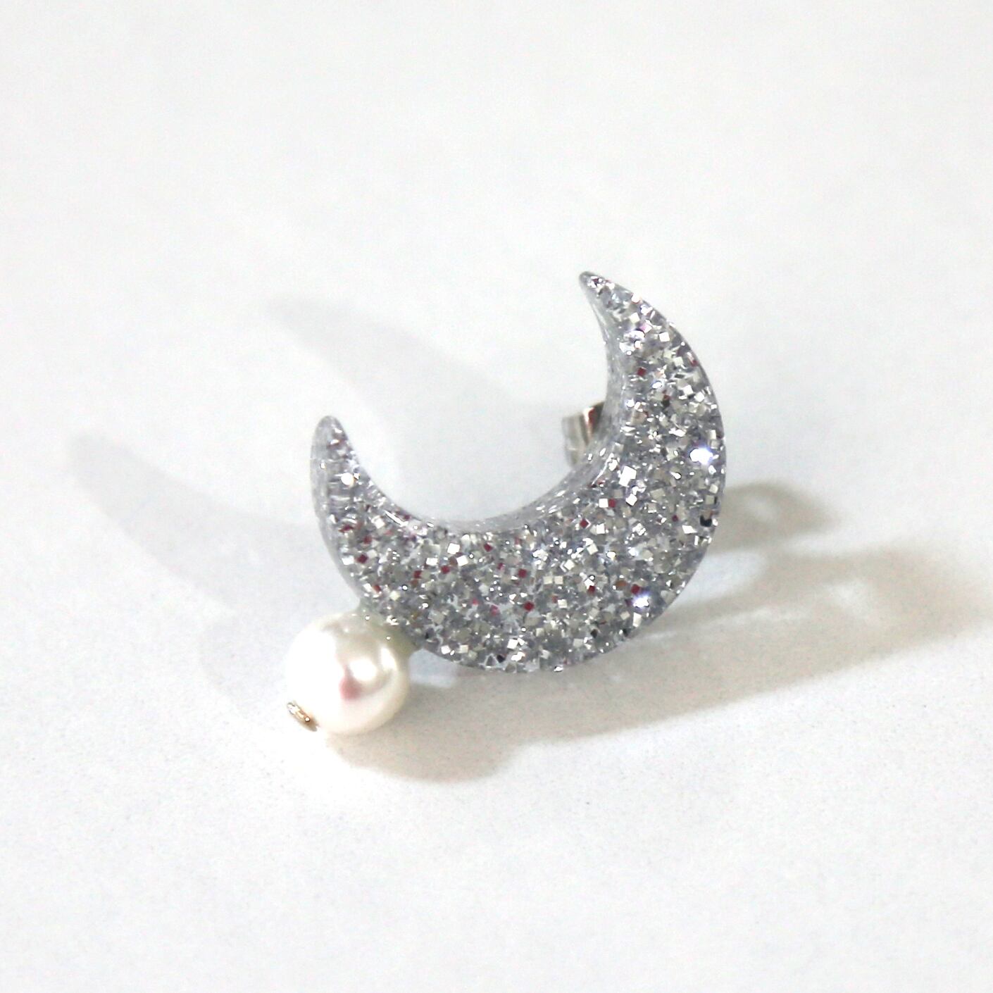 EARRINGS【ER-048】CRESCENT MOON(左欠け) SILVER GLITTER ※片耳販売