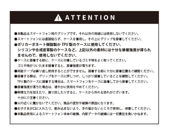 ●本製品はスマートフォン用のグリップです。それ以外の用途には使用しないでください。